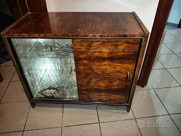 Mobile bar vintage italiano in radica, probabilmente degli anni '30 o '40. Da rivedere,necessita di piccole riparazioni visibili in foto. 60€