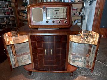 Mobile bar anni 50 con radio e giradischi alimentati a corrente perfettamente funzionanti.