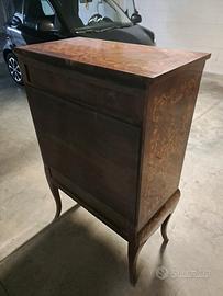 Mobile bar con ribalta in legno intarsiato e vetri