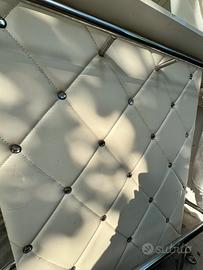 Pezzo unico esclusivo in solida struttura di legno e acciaio con rivestimento anteriore in pelle e cristalli stile Swarovski. Adatto per uso interno ed esterno.