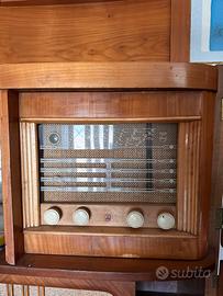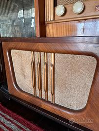 Mobile bar con radio e giradischi anni ‘40 in radica. Ottime condizioni esterne ma il giradischi deve essere sostiuito perché rotto.