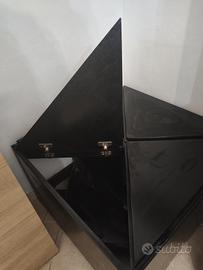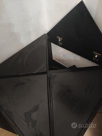 mobile bar girevole in legno. i quattro laterali triangolari si alzano tutti e consentono di prendere bottiglie o bicchieri da qualsiasi lato. realizzato su misura circa 60 anni fa. ha logicamente dei piccoli graffi dovuti gli anni ma tenuto benissimo