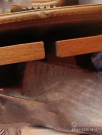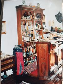 mobile bar in legno, stile marinaro, completo di uno sgabello, rifiniture in ottone con mensole e spazi porta bicchieri, tre cassetti . necessità di lucidatura, qualche graffio nella parte di appoggio che sparisce dopo lucidatura . ritiro in loco. Contattarmi via mail. No perditempo