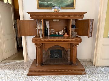 Vendo elegante mobile bar vintage in legno, in ottime condizioni, con finto camino decorativo nella parte inferiore e zona bar superiore illuminata.