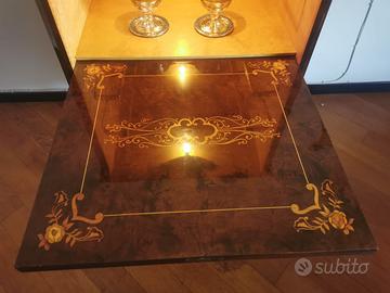 Mobile bar in radica di noce intarsiato condizioni ottime con luci interne Altezza 120 Larghezza 73 Profondità 43