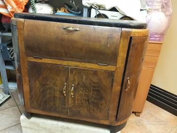 mobile bar in radica anni 50 con giradischi Lesa e vetrina bar incorporata
