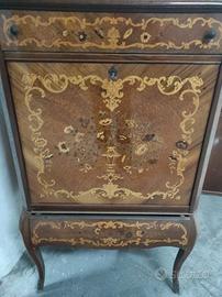 Privato vende mobile bar in stile ‘maggiolino’, con anta a ribalta, cassetto, scansie interne. In ottime condizioni, come da foto. Fondi in ottime condizioni. Non spedisco e non consegno. Non sono interessato allo scambio con altri oggetti. Prezzo poco trattabile