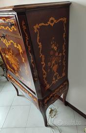 Mobile bar in stile "Maggiolino" anni 70 in ottime condizioni. Dotato di ribalta, specchio interno, cassetto, ripiano interno in vetro e luce interna. Ingombro max l=76; h=120; p=42