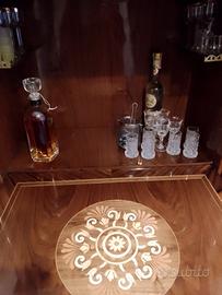 mobile bar con cassetti, intarsiato. Altezza 1,52 metri Lunghezza 92cm profondità 47cm. ottime condizioni!!