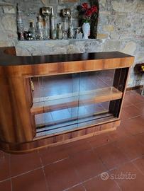 mobile bar semicircolare con pedana,illuminazione. finitura mogano
