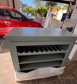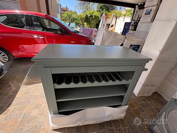 Mobile bar Maison du Monde in legno verniciato, praticamente nuovo, colore molto versatile Ha dei vani per le bottiglie ed altri ripiani per bicchieri od altro. Idoneo ad una sala hobby, per una casa di campagna o al mare, ma perfetto anche in città, dona un tocco di freschezza provenzale agli ambienti. Il prezzo è molto conveniente, per via del fatto che manca uno dei due portacanovaccio. Ritiro a carico vostro zona Roma sud, Axa-Casalpalocco