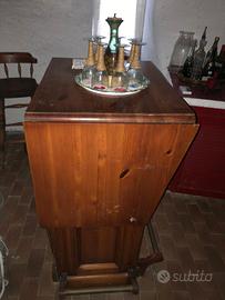 - Mobile bar in mogano massiccio, allungabile, dimensioni h cm 130, profondità cm 70, larghezza chiuso cm 90, aperto cm 180. Con frigo incorporato.