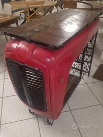 Realizzato con frontale trattore antico e con piano superiore uso tavolo in legno massello antico di mango.