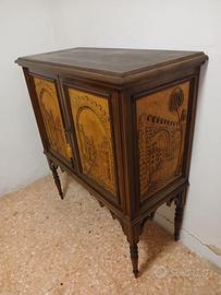mobile bar in legno massello stile anni '60, con ante e fianchi lavorati a rilievo come da foto