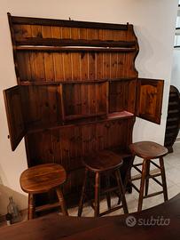 vendo questo mobile bar per taverna comprensivo di 3 sgabelli e vetrina. condizioni ottime! - vetrina L=120 H=176 P=25 - banco bar L=147 H=102 P=65