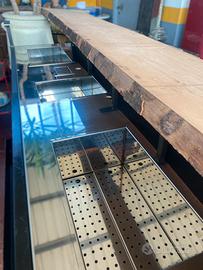 Descrizione: Vendo / noleggil banco bar artigianale professionale, ideale per eventi, catering, locali o attività itineranti. Dimensioni: •Lunghezza: 2,20 m •Altezza: 1,30 m Caratteristiche: •Top in legno di abete massello •Struttura robusta con finiture in acciaio inox •Doppia postazione operativa •Doppia vasca professionale •Porta bottiglie integrato (capacità 24 bottiglie) •Retrobar in ferro lavorato con ripiani •Impianto idraulico autonomo già installato Banco completamente artigianale, realizzato su misura con materiali di qualità. Perfetto per chi cerca una soluzione pronta all’uso e di forte impatto estetico. Disponibile anche realizzazione su commissione di altri banchi personalizzati.