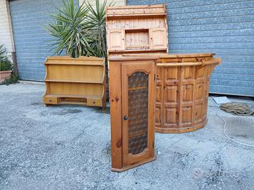 mobile bar in pino con portabottiglie mobiletto angolare e piattaia. prezzo con ritiro sul posto eventuale trasporto da valutare.