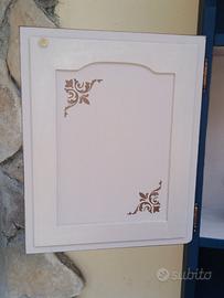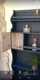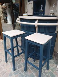 Struttura 100 %in legno di pino massello, personalizzato in un bellissimo blu notte, adornato con ritocchi eleganti dorati e motivi decorativi. Dona all'ambiente un aspetto accogliente. Con bancone a 2 ripiani spaziosi e 2 seggioloni