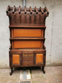 Mobile bar composto da: elemento a muro+bancone+sgabello. Interamente in legno massiccio con inserti in cuoio e borchie bronzate. VINTAGE, originale fine anni '50. Misure mobile bar: cm 120x33x225h. Bancone: cm 120x55x110h. Contattate per messaggio. Disponibile per il ritiro.