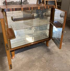 Mobile bar vintage in radica con interni in specchio
