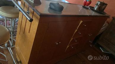 Mobile bar vintage anni ‘40 in radica chiara con ripiano a specchio