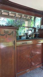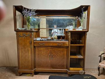 bellissimo mobile bar con specchi e vetri. piano in marmo con leggera crepa. l'anta mancante è semplicemente smontata. mobile perfetto per piccolo negozio: fiori, pasticceria, bar.