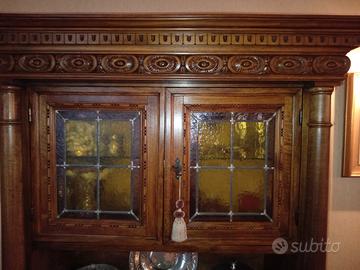 Mobile bar vintage con vetrinetta ed illuminazione. Misure: Larghezza 144.5 cm, Altezza 188 cm, profondità 50 cm Euro: 600 Ritiro e trasporto a cura dell' acquirente.