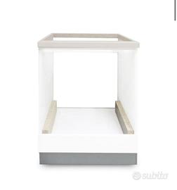 Comprende la base 60 cm x 60 cm di legno, 4 piedini, copripiedini grigio chiaro, top beige forato