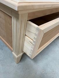 Il mobile è al grezzo, quindi perfetto per chi se lo vuole rifinire con lucidature manuali, finiture con tempere e patine, laccature artigianali, e qualsiasi altra finitura.