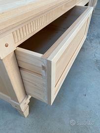 Il mobile è al grezzo, quindi perfetto per chi se lo vuole rifinire con lucidature manuali, finiture con tempere e patine, laccature artigianali, e qualsiasi altra finitura.