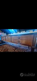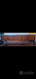mobile originale anni '60 con 6 cassetti e chiave, motivo intarsio, con lastra superiore in vetro (piccolo difetto della carta sottostante la lastra, in un punto)