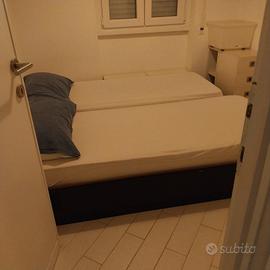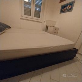 Mobile con 4 cassetti di legno massello bianco e blu con adesivi pesci (che si possono staccare) ideale per casa al mare. Misure: 147 cm larghezza, 62 profondità e 50 altezza + 2 letti singoli blu uguali al mobile realizzati dallo stesso falegname con materassi. Tutto in buone condizioni. vendo in blocco euro 50 Ritiro a Fregene