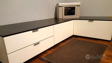 Vendo MOBILE-CASSETTERIA BASSO con CASSETTIERE in legno massiccio, colore BIANCO, con piano color WENGE’, originale POLIFORM.