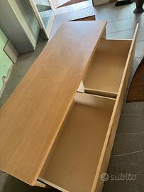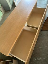 Vendo mobile basso uso credenza o madia, dotato di due ampi cassettoni molto capienti. Misure: 60x180 h54 Struttura solida e stabil Presenta normali segni di utilizzo dovuti al tempo.