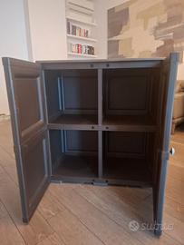 Mobile basso da esterno in polipropilene, color wengè, molto robusto Misure cm 86 x 78 x42 /(h x l x profondità)