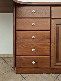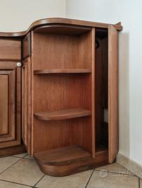 Vendo mobile basso in castagno massello tintato opaco composto da 1 modulo cassettiera a 5 cassetti con frontali sempre in massello castagno tintato opaco, 2 ante cieche con bugna e cornici in massello castagno tintato, 1 modulo a giorno composto da mensole sagomate in massello castagno e bordate con bordo v.l., Piano superiore sagomato in massello castagno tintato opaco con cornice perimetrale sagomata con riflesso in massello castagno. Piede sagomato in massello castagno tintato opaco. Zoccolatura in listellare castagno H.7cm . Chi capisce di mobilio comprende il valore di questo mobile, pagato qualche anno fa 4,200 € , vendo per mancanza di spazio a 630€ . Prima della consegna sarà mia cura far lucidare il mobile. Per favore astenersi sognatori affaristi e altro, non vendo per necessità, il prezzo visto la classe del mobile è già di per se un regalo