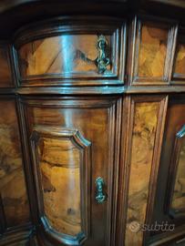 Vendo mobile basso (madia) in legno massiccio con due cassetti e sei sportelli. Da sistemare la cerniera di uno sportello laterale.