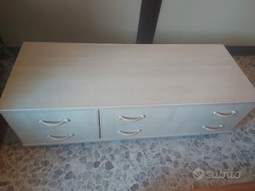 Mobile basso, colore rovere chiaro. 2 assetti grandi e due piccoli . Ideale per appoggiare televisore o come arredo moderno. Ritiro al domicilio.