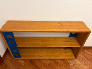 Scaffale basso 120 cm lunghezza in massello d’abete con rinforzo verticale blu acquistato 4 anni fa da Woodly. Come nuovo. Disponibile anche un letto montessoriano “reverso” 120x200 in coordinato. Si veda annuncio dedicato.
