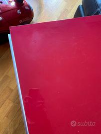 Ikea, tre cassetti centrali con due cassettoni ai lati con ruote. Stato ottimo a parte segno sulla parte superiore destra visibile nella foto. Foro sul retro eseguito per passaggio degli attacchi dei cavi della tv. Misure 180x40x49(h)