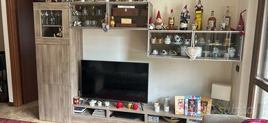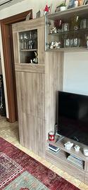 Mobile sala con colonna porta TV e due verrine sospese
