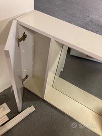 Vendo mobile bianco con specchio e luce usato. Ha due ante con relativi ripiani in vetro. Ha un difetto sopra un anta come da foto. No spedizione. Contatto via mail.
