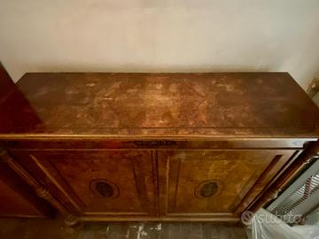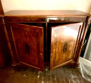 Mobile con sportelli in stile Biedermeier radica di noce della prima metà del XIX.