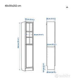 Mobile/ libreria/ scaffale Billy IKEA Anta in vetro 6 ripiani regolabili Possibilità di fissarlo al muro L’ho montato una volta e lasciato sempre nello stesso punto, quindi é in perfette condizioni (mai smontato, mai spostato) Legno scuro/ noce/ rovere Valuto offerte