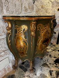 Mobile bombato stile barocco/veneziano, produzione italiana metà ’900, decorazioni dorate.