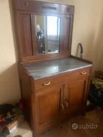 Mobile con dopoia anta e un cassetto Inserto in marmo grigio dotato di specchio maniglie in osso