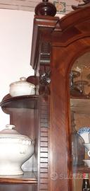 Mobile buffet fine 800 in massello con lavorazioni artigianali e piano in marmo bianco.