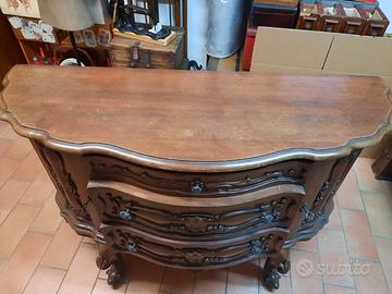 Mobile Buffet in legno massello misure cm 90 altezza, cm 50 profondità, cm 141 larghezza massima. Ben conservato, non presenta tarli, marchio di fabbrica presente sul retro del mobile e sul retro di tutti i cassetti. Necessita di piccoli restauri. Solo ritiro in loco.