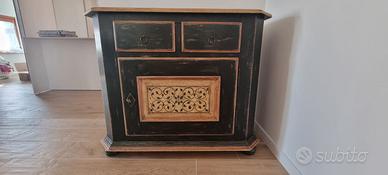 Mobile Buffet in stile provenzale di pregiata fattura in legno massello. Misure L112xh92,XP 45 Profondità interna 40 RIpiano interno regolabile in altezza. Zona Morena - Ritiro sul posto Prezzo 749 euro - no perditempo