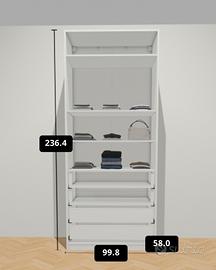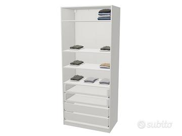 Vendo struttura armadio a giorno in colore bianco, ideale per cabine armadio, camera da letto o ripostiglio. Il mobile è molto capiente e organizzato in modo funzionale: • Parte superiore: 4 ampi vani con ripiani regolabili. • Parte inferiore: 4 cassetti totali, di cui 2 con frontale trasparente (comodissimi per vedere subito il contenuto) e 2 chiusi. Design minimale e pulito, si adatta a ogni ambiente. Ottime condizioni, robusto e versatile. Dimensioni guardare la terza foto